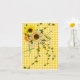 Gult solrosbukett med vit och ladybuggar på gingham quilt-bakgrund för ett blankkort