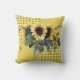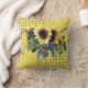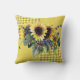 Solros Bouquet på Gult Gingham Mönster Kudde