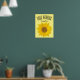 En lycklig och solig design med en enda solrosa och texten "Bra God morgon Sunshine" på ljusa gulter.