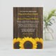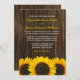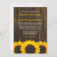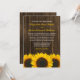 Rustika inbjudningskort med solrosmotiv. Ett landligt bröllopskort med gula solrosor på en mörkbrun lada trähusterräng. Matchande produkter finns tillgängliga.