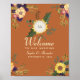 Elegant, modern, rustik terracotta bröllop välkommen poster med initialer, gult solrosor, vattenfärgade rosor och gröna blommor. Perfektens val för romantiska fallbröllop!