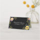 Elegant, modern blommig, botanisk rustik stämningsfull svart bröllops platskort med namn och bordnummer, solrosor, akvarellblommor och grönska. Perfekt val för chic höstbröllop!