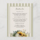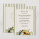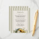 Denna solros-hjärtliga detaljerkort är det perfekta tillskottet till din inbjudan, som kombinerar elegant typografi med mjuk botanisk charm. Med gyllene solrosor, elfenbensfärgade blommor och grönska på en varm krämfärgad bakgrund med en rand i salvia-ränder, kompletterar den rustika, trädgårds- och utomhusbröllopsteman vackert.