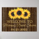 Solros Bröllopsfest Rustik Trä Välkomstskylt Poster