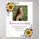 Denna begravnings skylt har solrosor, burgunder röda rosor och blommor, bladverk och falska guldgeometriska element. Anpassa den med din bild och text