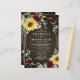 Designen har en tryckt trästrukturbakgrund med en geometrisk guldfärgad ram som är dekorerad med burgunderröda rosor, skära blomelement, solrosor, eukalyptus och annan grönska.
