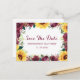 De här sparar datumkorten med en solrosolja med vattenfärg och en burgundisk utformning av ro gräns. De ingår i en samling som innehåller en fullt av matchande bröllopsinbjudningar och papper. Besök vår butik eller våra insamlingssidor för att se det urval av objekt som du kan anpassa för bröllop.