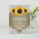 Solros Burlap och Snöre Inbjudningskort för möhippa - har en tryckt land-rustik-spiral och snöre med solblommor.