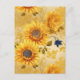 Behålla i kontakt med vänner och nära anhöriga med ett vackert Chiyogami mönster-vykort med solblommor i guld-bakgrunden.
