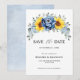 Solros dammig blå skiffer peony blomsterbröllop spara datumet