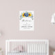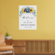 Elegant och modern blomstermidsommarbröllops välkomstkort har en bukett av akvarell solros hydrangea & peonior i nyanser av gul , skiffer, dammig blå med frodiga gröna botaniska blad och eukalyptus. Hitta fler matchande mönster och variationer från min "blissweddingpaperie" -butik. Kontakta mig gärna för ytterligare anpassning eller matchande artiklar.