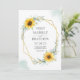 Solrossols Elegant Rustic Geometric Guld Wedding Inbjudan Design har vattenfärgsgrönt, solblommor.