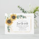 Skapa en modern Solrosblomma Blommigt spara datum meddelande med den här söta mallen med vacker rustik blommigt bouquet, geometriskt ram med modern enkel typografi på vit bakgrund. TIP: Matchande bröllop-svit som OSA, bröllopsprogram, banderoller, tapetik, presentkort, skyltar och andra bröllop-kök och märkre-godis finns i samlingen nedan med denna design.