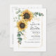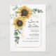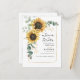 Skapa ett modernt solrosblommigt spara-datum-postkort med denna söta mall med vacker rustik blomsterbukett, geometrisk guldeffekt ram, med modern enkel typografi.