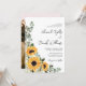 Inbjudan dina gäster till ditt land-trädgårdsbröllop med den vackra inbjudan till solrosbröllop. Med en grönt med eukalyptus och solroshalt i vattenfärg är det här kortet perfekten för att informera dina nära och kära om din speciella dag. Anpassa med fotot på baksidan. Oavsett om du gifta sig på en gård på landsbygden eller håller en trädgård-stil firande i staden, så kommer inbjudan att fånga romantik och skönheten på din dag.