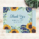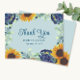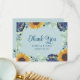 Denna bröllopskortdesign med tackmeddelande har vackra akvarellblå blommor, solrosor och eukalyptusgrenar på en dammig blå bakgrund. Variationer av denna design, olika papperstyper (inklusive budgetalternativ) samt kompletterande produkter finns tillgängliga i vår butik, zazzle.com/store/doodlelulu. Kontakta oss om du vill att denna design ska appliceras på en specifik produkt för att skapa din egen unika matchande vara! Tack så mycket för att du tittade på en DoodleLulu by 2 june bugs-design!