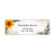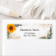 En akvarellmålad solros, eukalyptusgrönska och falskt guldblad. Dekorerad med falskt glitterdamm. Personifiera och lägg till ditt namn och adress. Svarta bokstäver.
