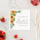 Rustika servetter för bröllopsfest med vattenfärg buketter av glada solrosblommor och eukalyptusgrönska, ett chic kalligrafiskript och elegant serif-typografi.