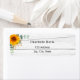 En akvarellmålad solros, eukalyptusgrönska och falskt guldbladverk. Rustikt vitt trä som bakgrund. Personifiera och lägg till ditt namn och adress. Svarta bokstäver.