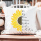 Gör en påstående av din tro med den här unika designen av en pulserande gult halv solros dekorativ kudde med en vers från Galatians 5:22: "Men frukten av spriten är kärlek, glädje, fred, tålamod, godhet, godhet och trohet. Denna trosbaserade kudde kommer att göra ett komprometterat och unikt tillägg till din hemmabruk.