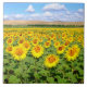 Solros fält på vägen Saint James (Camino de Santiago) före Recedilla del Camino, La Rioja, Spanien