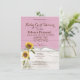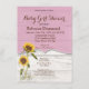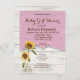 Den här solrosoljeinbjudan till flicka har två vattenfärger som solblommor som växer i ett gräsmask i land. Bakgrunden är att den vita laduvirveln ser ut med en halv banderoll i rosa överst för att ta hänsyn till all inbjudningsinformation som behövs, inklusive den som finns på listan. På baksidan av kortet ser det också ut som om det är vita laduvirke.