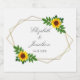 Konstruktionen har solblommor och botaniskt löv över ett utskrivet guld färgad geometriskt ram.