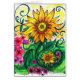 Ursprungligt teckning av en solrosa och andra blommor. Skapat med pennor, pennor, markörer och pennor.
