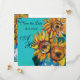 Solrosor och gröna blad i gula och turkosa blå färger.Färgrik och uttrycksfull akrylmålning på duk av Bulgan Lumini (c)