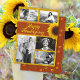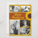 Glad Julfest fotokort med solros. Rostorange och gula kort med hälsning och fem mallar för foton av familjen, barn, husdjur eller vad du vill. Exempelfotona är i svart och vitt men dina behöver inte vara. Denna design finns också tillgänglig som en direktnedladdning för digital delning.