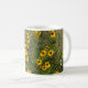 Ett kaffe mugg som innehåller ett foto av solblommor.