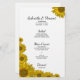 Anpassa söt Solros Kant Bröllop Menu med uppgifter om den måltid som du kommer att under sommaren eller vid repetitionsmiddagen, möhippa luncheon eller giftermål genom att lägga till sallad eller första kursen, andra kursen och dessert eller tredje kurvan. Anpassa den med namnen av brudgummen, platsen och händelsemedatum. Den här elegant blommigt bröllop-menyn innehåller gult solblommor som fäster hörnen med vit bakgrund. Perfekt för en sommarträdgård i party firande.