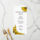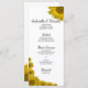 Anpassa söt Solros Kant Bröllop Menu med de uppgifter om måltiden som du kommer att vid din repetitionsmiddag, förlovning trädgård party, möhippa luncheon eller giftermål-mottagning genom att lägga till sallad eller första kurs, kurs eller andra kurs och dessert eller tredje kurs. Anpassa den med namnen av brudgummen, platsen och händelsemedatum. Den här elegant blommigt bröllop-menyn innehåller gult solblommor som fäster hörnen med vit bakgrund.