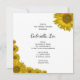 Inbjudan gäster till en bröllopsfest som hedrar bruden att vara med den heliga solrosaren Kant Inbjudningskort för möhippan. Den här anpassningsbarna i eleganten möhippa inbjudan har gult solrosblommor blommar som fäster hörnen med vit bakgrund. Perfekt eller idé för en sommar- eller trädgårdsevenemang vid firande i party.