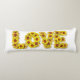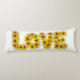 Lägg till en touch av glädje och lycka med denna söta solros "kärlek" kudde. Mönstret har olika amber- och röd-orange färger. Uttryck dig själv genom att experimentera med olika bakgrundsfärger.