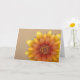 Detta vykort har en stor, livfull solros mot en varm bärnstensfärgad bakgrund. Den vackra blomsterdesignen gör kortet perfekt för att skicka varma hälsningar, en vänlig hej eller tankar om sympati. Tomt på insidan.
