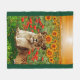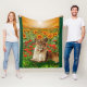 En majestätisk lioness sitter för ett fält av solrosor och vallmor, blommorna av den Leo zodiacen.