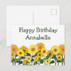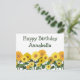 Ett vackert fält av gula solrosor pryder under ditt anpassade Lycklig Födelsedag-meddelande. Ett vackert blommigt födelsedagskort för en glad, lycklig vän. Anpassa ditt eget meddelande ovanför det blommande mönstret.