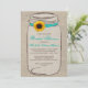 Det här inbjudningskort för möhippan har en bakgrund med ett brännvinsliknande utseende med en burk-kontur som är knuten till turkosribban och en solroshalt. Perfekt för en möhippa med kurvtema, vintage eller land.