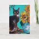 SOLROS MED SVART KATT I BLÅ TURKOS KORT