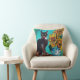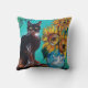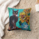 SOLROS MED SVART KATT I BLÅ TURKOS KUDDE