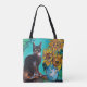 SOLROS MED SVART KATT I BLÅ TURKOS TYGKASSE