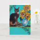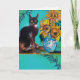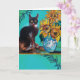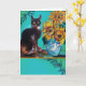 SOLROS MED SVART KATT I BLÅT TURKOS KORT