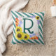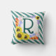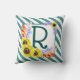 En söt, monogrammerad kudde med solblommor och teal rand.