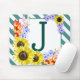En söt monogrammusmatta med solblommor och diagonal teal rand.