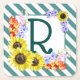 Solros Monogram Teal Rand Underlägg Papper Kvadrat