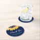 Rustika blå och solros bröllopspresenter coaster med solrosor och strängljus på en blå bakgrund. Perfekta föremål för en blå rustik bröllopsfest inspirerad av solrosor. Billiga blå rustika bröllopspresenter eller partidekoration.