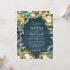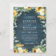 Solros Navyblå Trä Rustik QR-kod Bröllop Inbjudningar