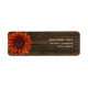 En adressetikett med en solrosbild lämnat över en bakgrund av barnwood. Anpassa texten med ditt namn och adress.