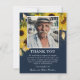 Ett speciellt begravningstack från extra för att du antingen ska lämna ut på tjänsten eller skicka till vänner och familj som har visat dig kärlek och stöd under din sorgetid. Med en trendig marin blå bakgrund med rustik höstskalv, solblommor och grönt botaniskt blad, faux guld konetti och ett tackkort som lätt kan personlig.